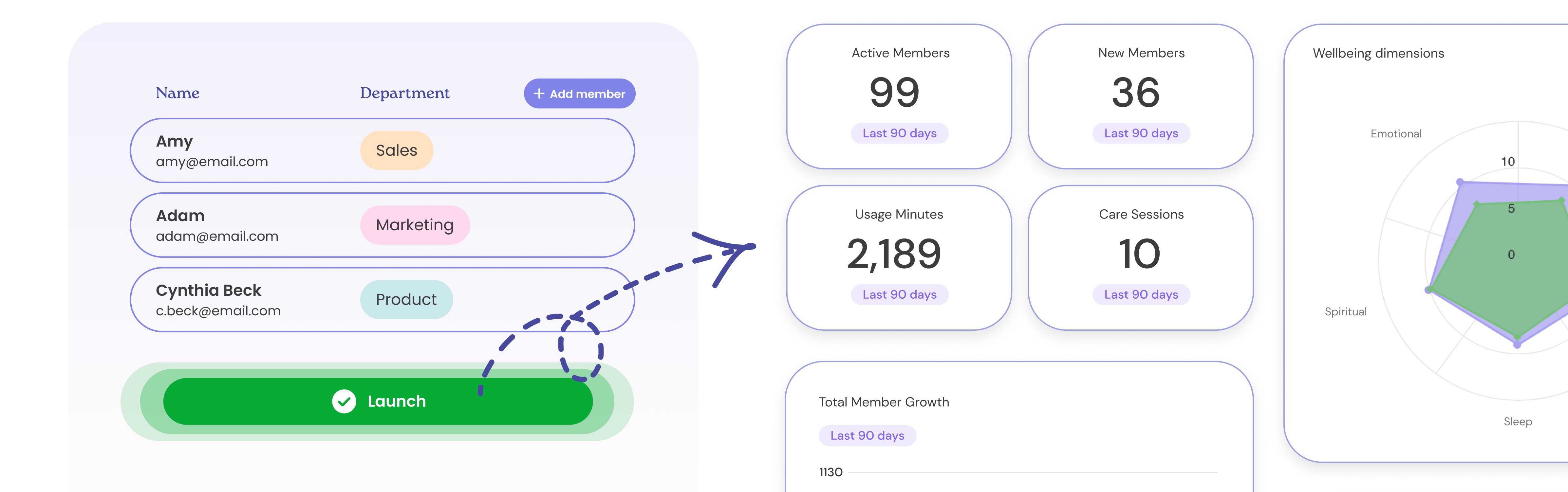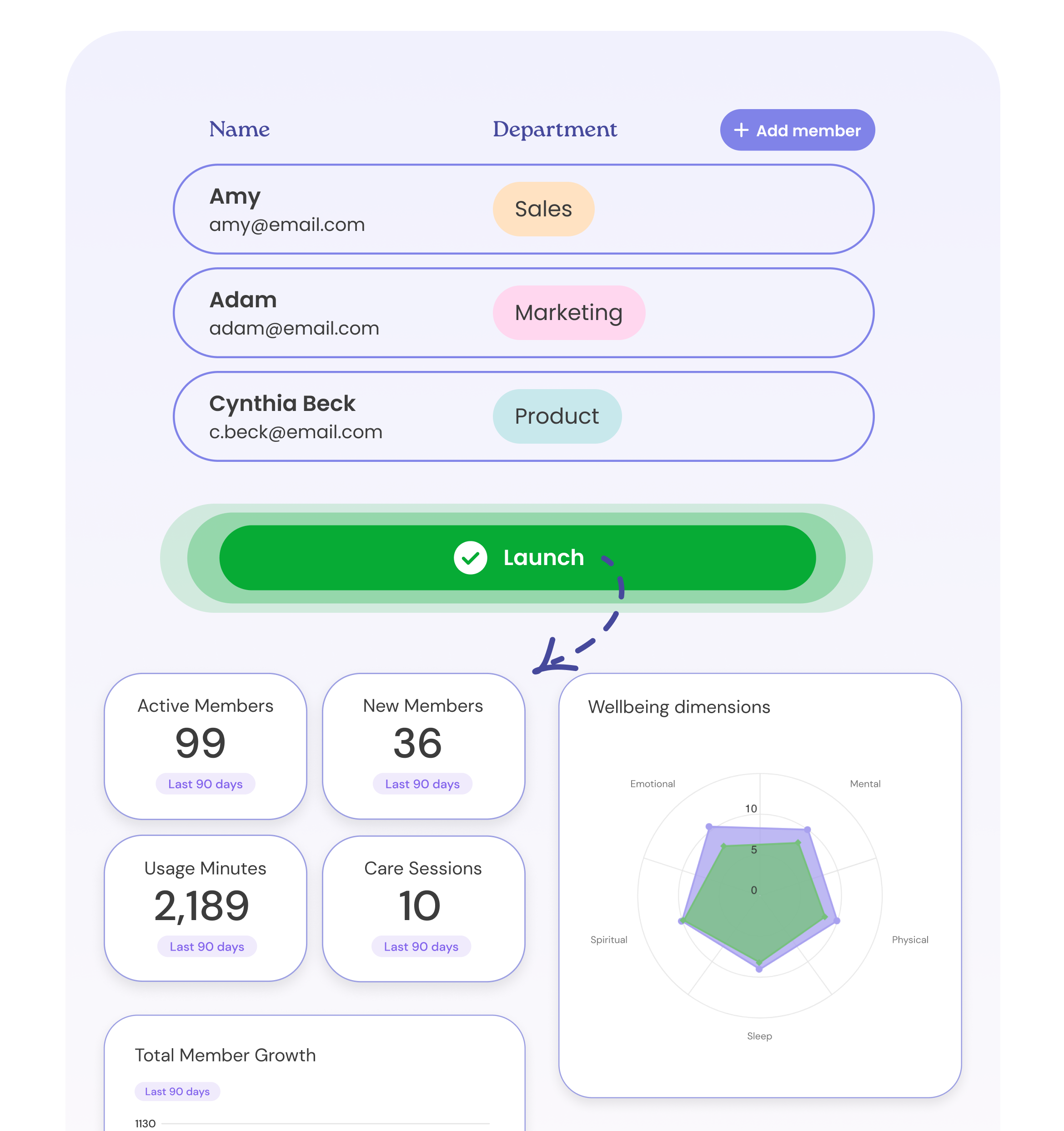 Instantly launch your employee assistance program and let our automations take the reins. We’ve got your employees’ mental health covered from here.